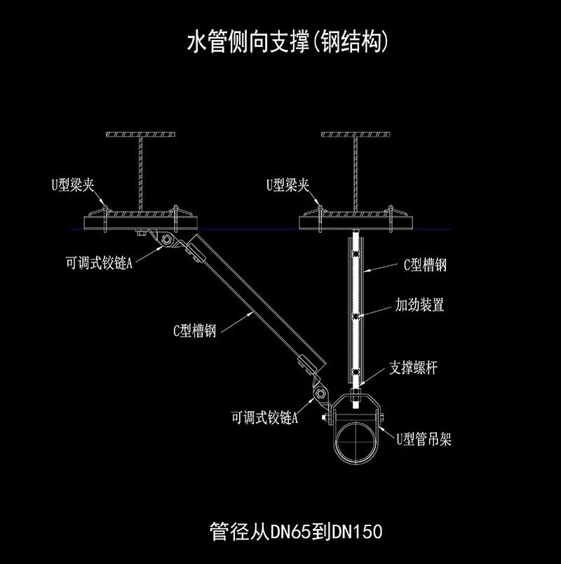 抗震支架各种系统的设计规范及误区解读发表时间:2021-08-15 12:22 给排水系统为防止地震时给排水管道系统及消防管道系统失效或跌落造成人员伤亡及财产损失,根据《建筑抗震设计规范》(GB50011-2010)第1.0.2条、第3.7.1条及《建筑机电工程抗震设计规范》(GB50981-2014)第1.0.4条等强制性条文,应对机电管线系统进行抗震加固。本项目对直径≥DN65的管道设置抗震支吊架,且此项目抗震支吊架产品需通过FM认证,与混凝土、钢结构、木结构等须采取可靠的锚固形式,具体深化设计由专业公司完成。抗震支吊架的设置原则为:新建工程刚性管道侧向抗震支撑最大设计间距12米,纵向抗震支撑最大设计间距24米,柔性管道上述参数减半;(为保证抗震系统的整体安全性,对长度低于300mm的吊杆,也建议进行适当的补强);最终间距根据现场实际情况在深化设计阶段确定。所有产品需满足《建筑机电设备抗震支吊架通用技术条件》CJ/T476-2015。安装示意图如下: |
